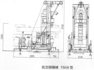 ![]() 低空頭機械TBH8型 1台保有φ2000まで掘削、作業高3mでの施工も可能。 機械はコンパクトで運搬組立・解体可能 低空間現場工事で多用 | ![]() |